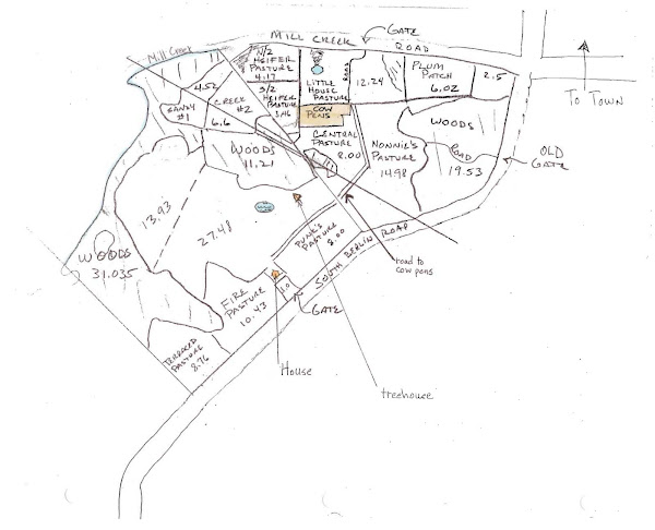 I got Dad's truck inspected. Dan told me this week that he came once to find the cows in the North half of the Heifer Pasture, but couldn't find how they got in there. I suspected that they went through the old fence along the railroad ROW from the Little House Pasture and then into the Heifer Pasture through the old railroad fence along the north side of that pasture. I walked the old railroad fence today from the gate on Mill Creek road all the way to the fence between the Heifer pastures and the Little House pasture and found about 4 places where the fence was completely down. I cleared and completely rebuild a stretch of about 45 feet that began at the wire gap on the road in from Mill Creek road. There are about 3, maybe 4 more places where we need to clear, tear down the old fence and rebuild. most are only 15-20 feet stretches. I think we need to address these before we get back to the fence between SC 1 and SC 2. The fence seems to be find from the creek behind the tank to the fence between SC1 and SC2, it's just the part from the wire gap to the little creek behind the tank that needs attention.